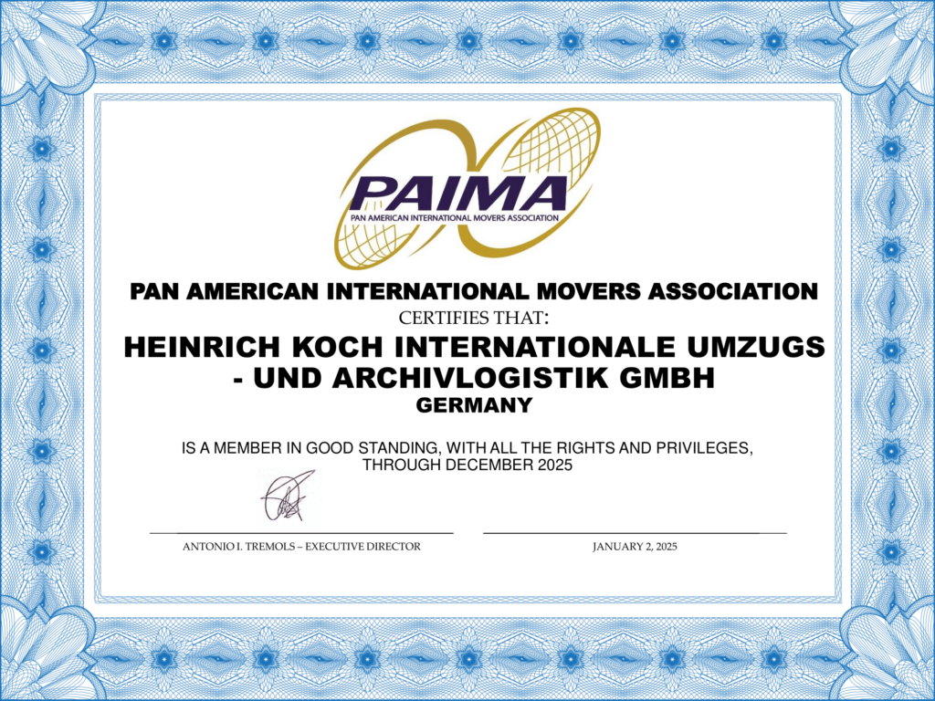 KOCH Umzugslogistik, ein führendes Umzugsunternehmen in Deutschland, freut sich bekannt zu geben, dass es nun offizielles Mitglied der Pan American International Movers Association (PAIMA) ist. Dieser Schritt unterstreicht das Engagement von KOCH Umzugslogistik für höchste Qualitätsstandards und exzellenten Kundenservice im internationalen Umzugsgeschäft.